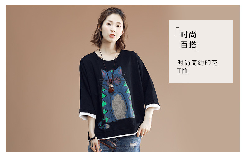 流行元素: 印花 拼接 袖长: 七分袖 服装版型: 宽松 衣长: 常规款
